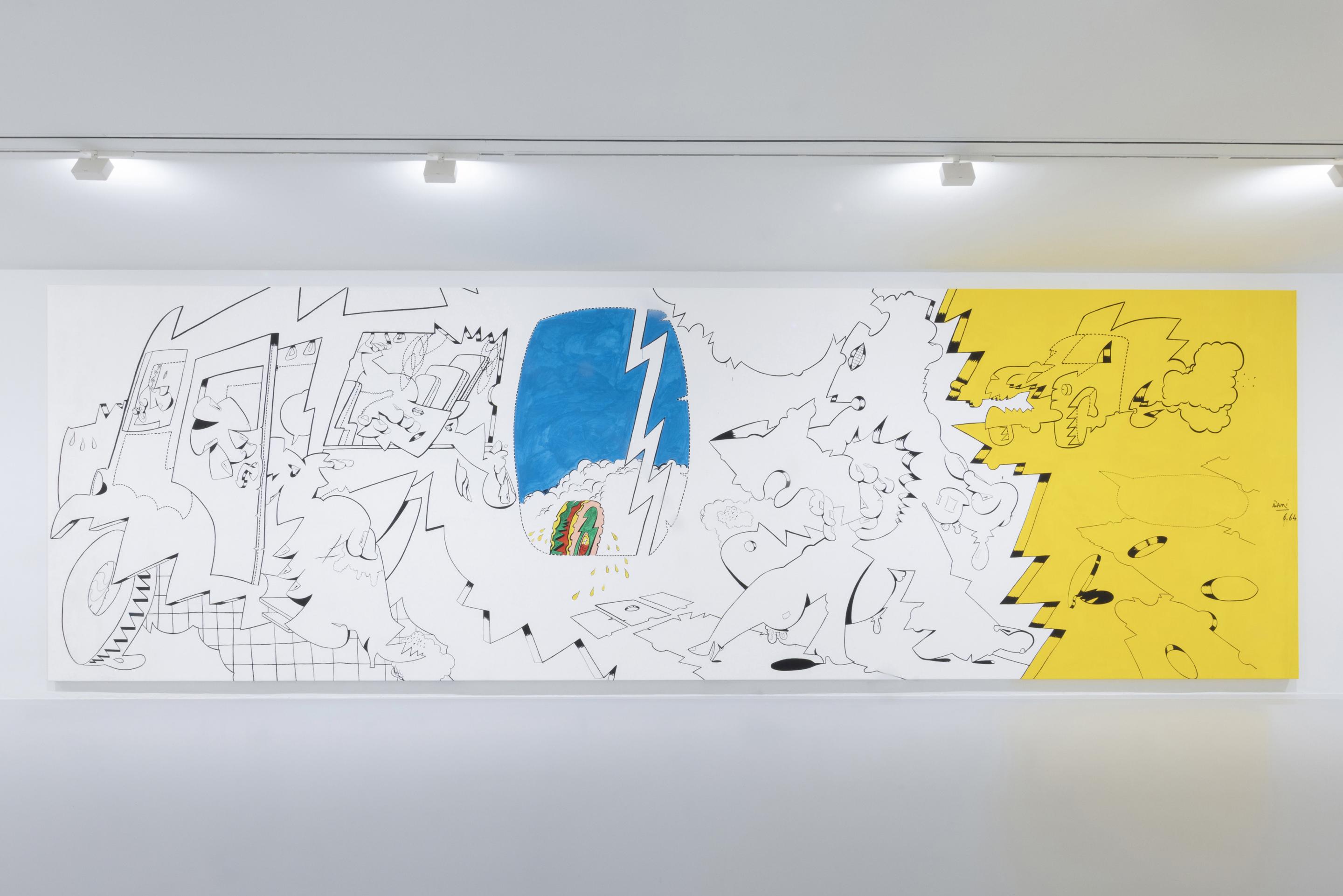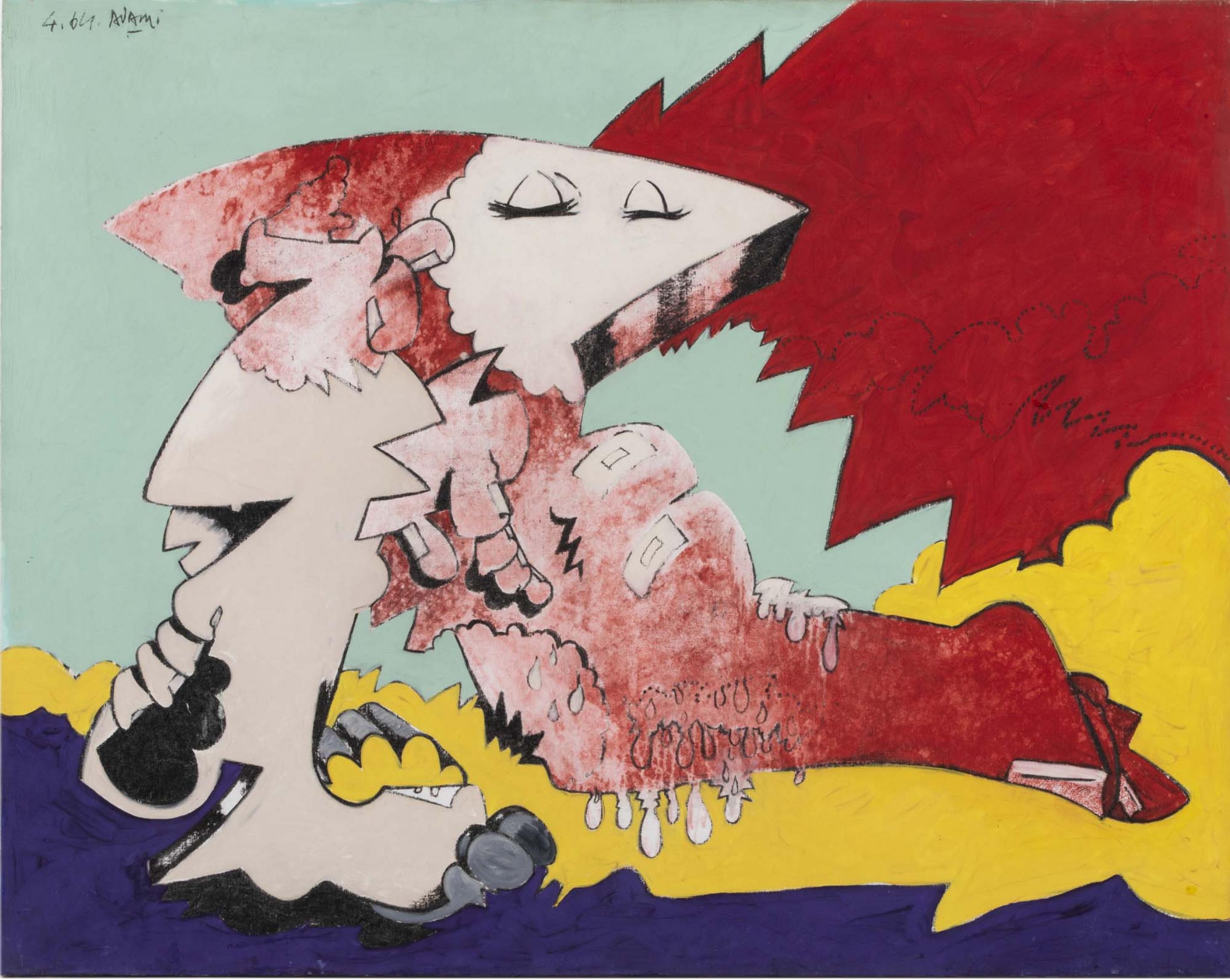 During the 1960s he became one of the leading representatives of the Narrative Figuration movement and took part in a number of group and solo exhibitions in Paris, among them the seminal show La Figuration Narrative. He soon gained an international reputation and was shown at documenta III in Kassel (1964), the Venice Biennale (1968) and the Museo de Bellas Artes in Caracas (1969). In 1965, the Studio Marconi had its first Adami exhibition.