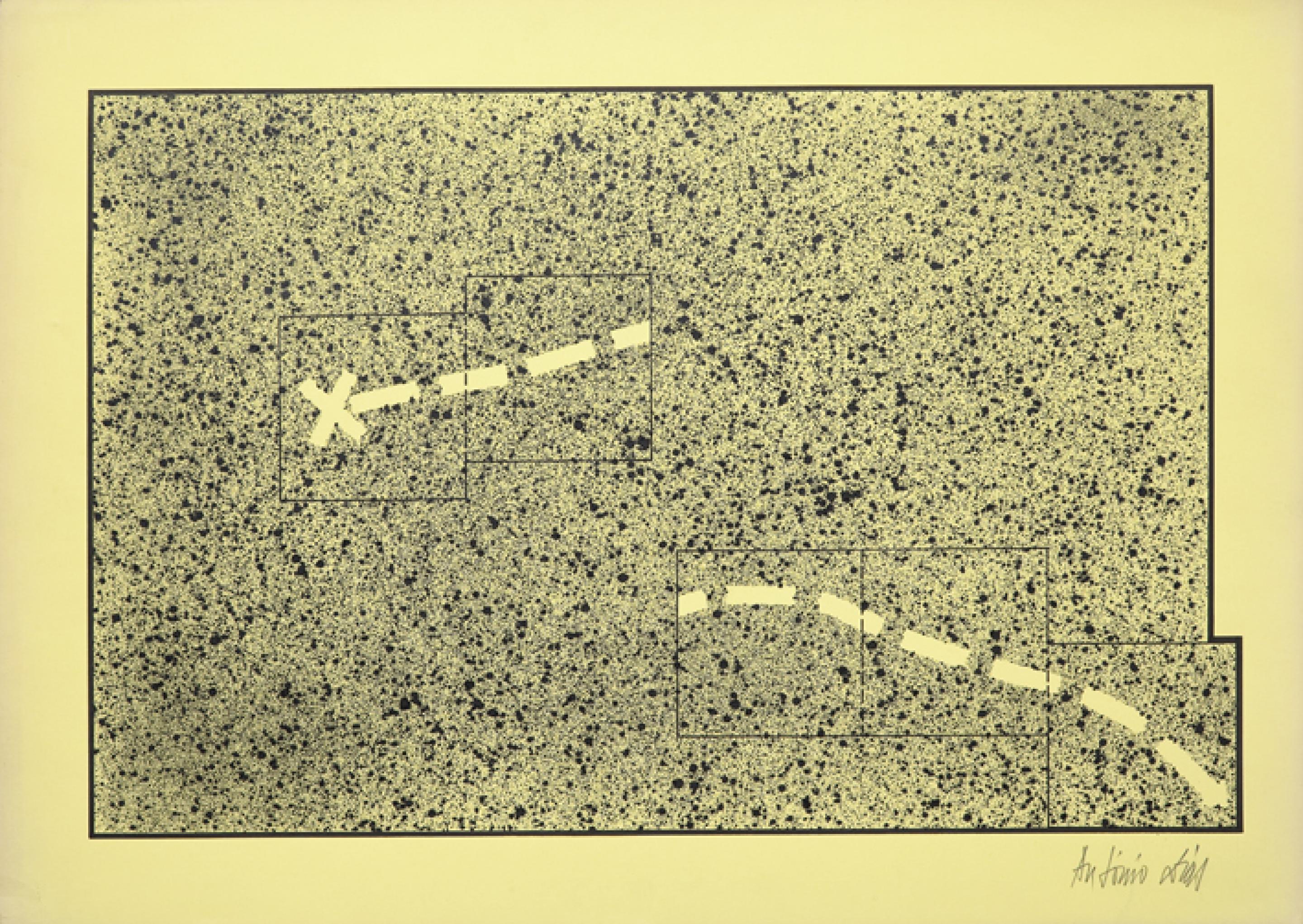 Colpito dal bisogno che ognuno di noi ha di vedere immagini diverse da quelle proposte, Dias decide dunque di studiare la dinamica mentale che fa scattare in chi guarda il meccanismo delle analogie visive. Ecco allora che, dopo aver dipinto con la vernice bianca un’infinità di puntini su fondo nero, si mette a tracciare un itinerario, collegando alcuni di essi con una riga bianca.