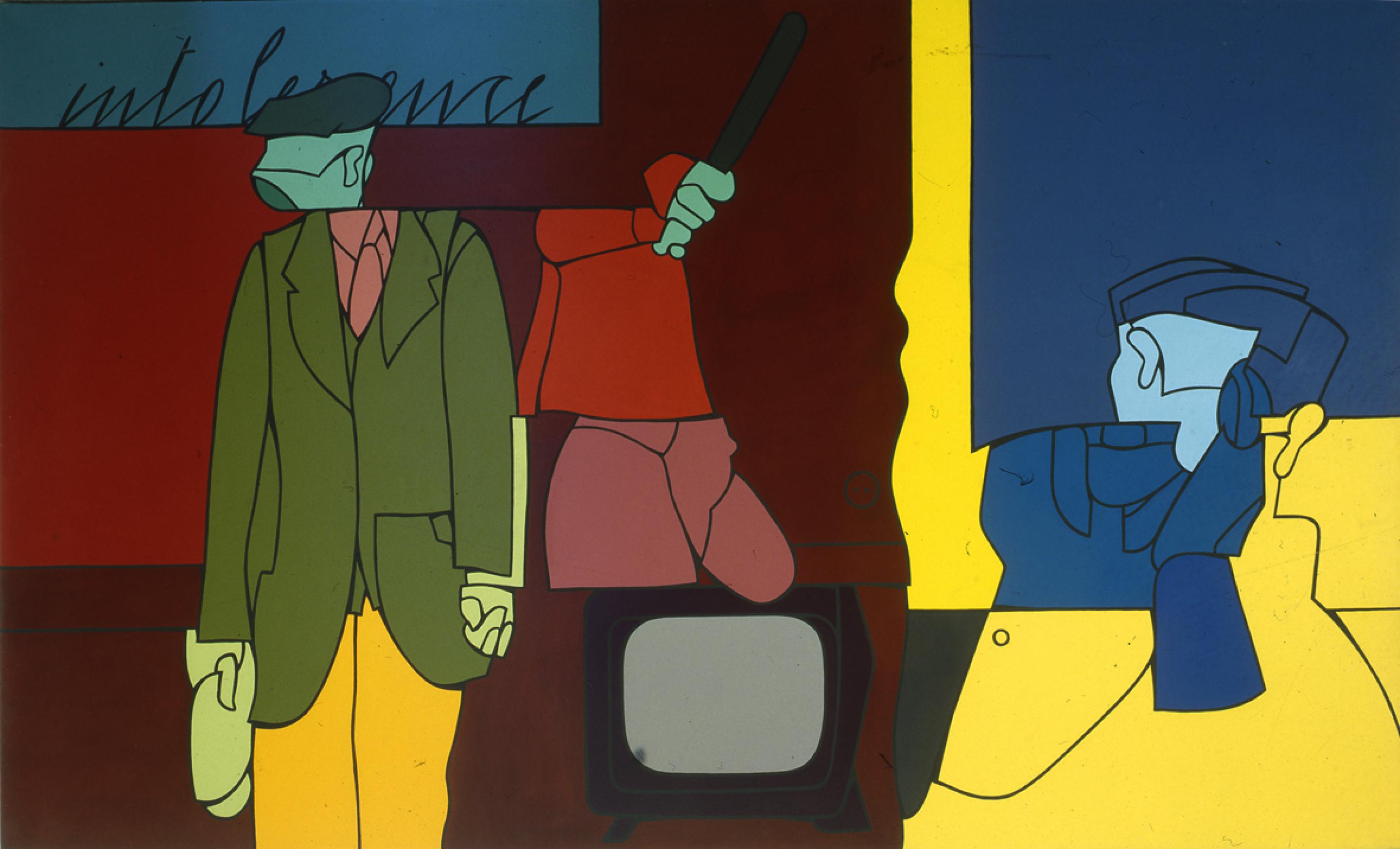 Attinge alla cultura visiva del pop americano, vivendo e pensando la creazione pittorica come strumento mentale di trasformazione del mondo per realizzare, come ben esprime Emilio Tadini in un testo nel 1965, “una figurazione integrale della nostra realtà”.