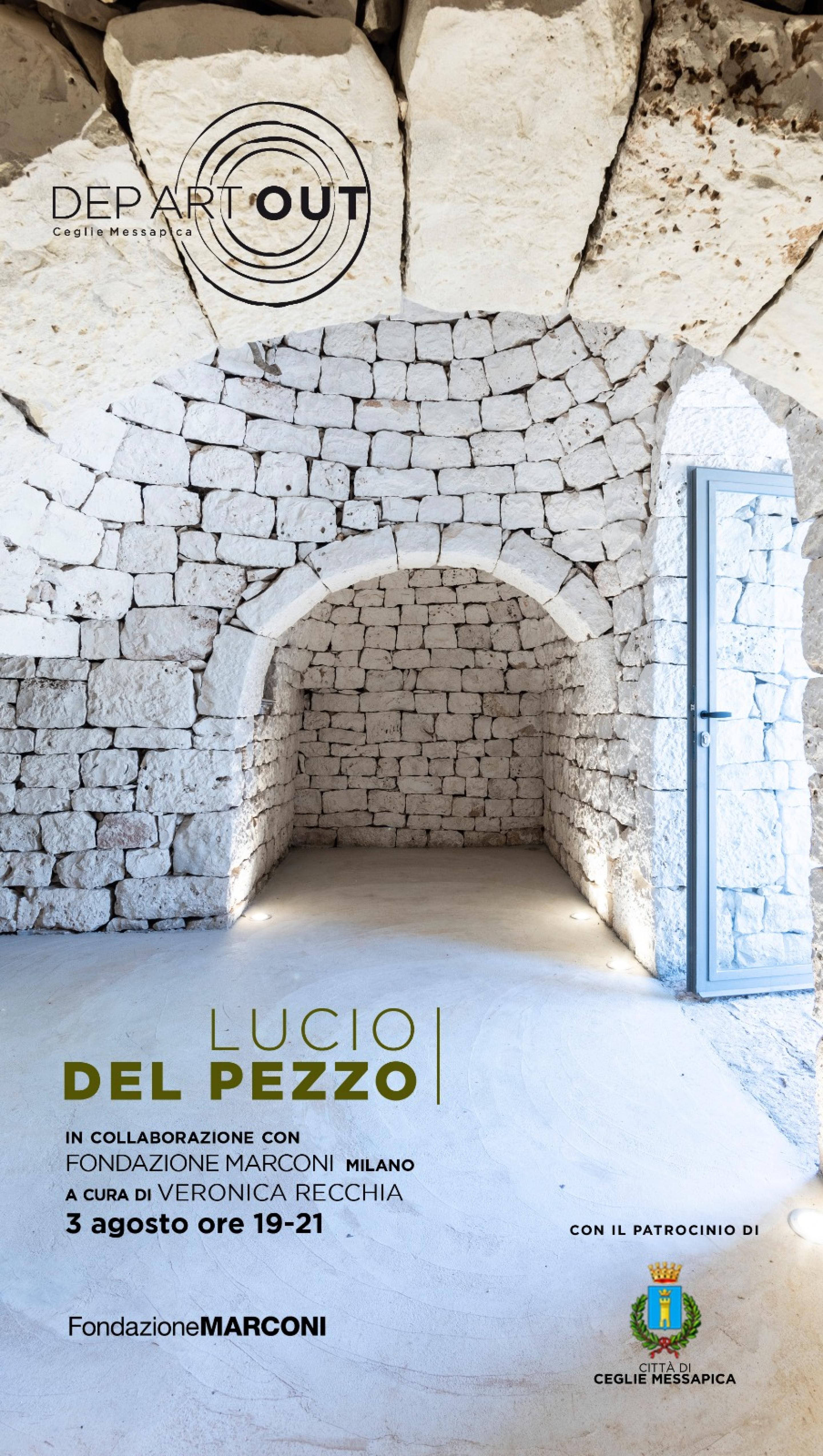 Dep Art Out e Fondazione Marconi sono lieti di annunciare una serata evento dedicata all’artista Lucio Del Pezzo. Domenica 3 agosto dalle 19 alle 21 il suggestivo trullo, sede estiva della Dep Art Gallery di Milano, ospiterà una scultura dell’artista napoletano. L’evento è a cura di Veronica Recchia.